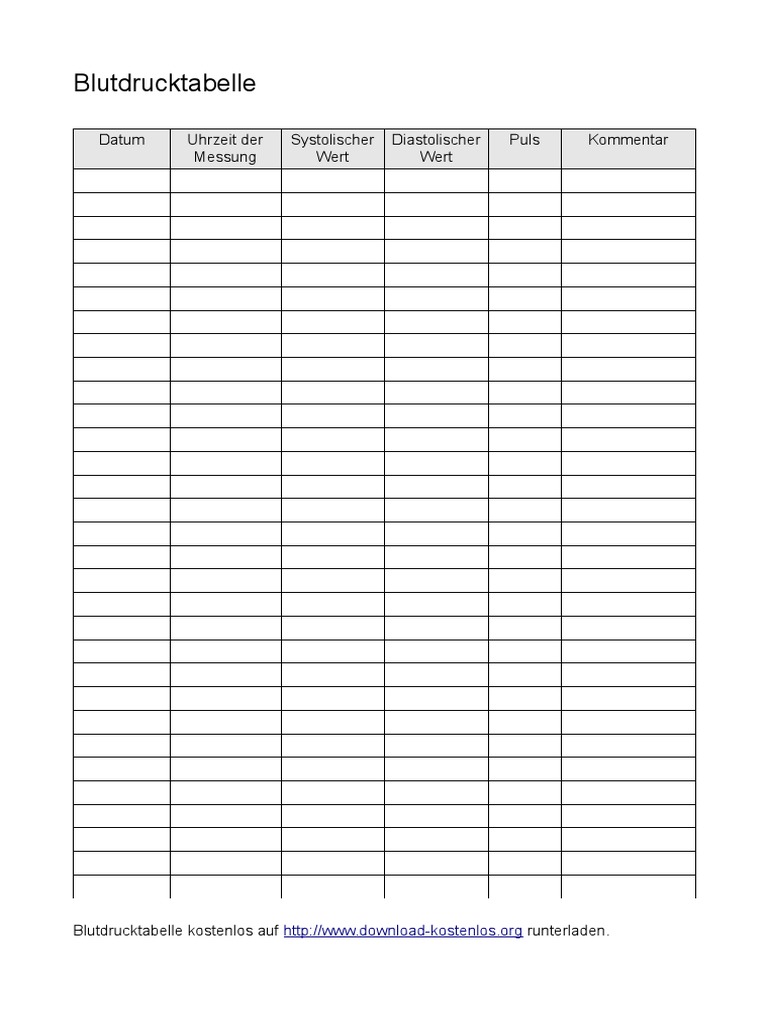 Wenn man bluthochdruck oder zu niedrigen hat, sollte auf. In der blutdruck daten arbeitsblatt können sie ihre tägliche feststellung für den blutdruck aufgezeichnet am morgen und am abend oder mit dem zeitlichen abstand von wenigen stunden aufzeichnen. Passwortliste zum ausdrucken und ausfüllen. Inhaltsverzeichnis1 blutzuckerwerte (mit tabelle)1.1 wozu ist der blutzucker da?1.2 wie und warum wird der blutzuckerwert gemessen?1.2.1 ein zu niedriger blutzuckerwert entsteht durch:1.2.2 zu hohe blutzuckerwerte entstehen bei:1.3 blutzuckerwerte tabelle blutzuckerwerte (mit tabelle) über den blutzuckerwert wird bestimmt, wie viel zucker beziehungsweise glukose sich im blut befindet. Unser blutdruckrechner gibt eine sofortige einschätzung ihres aktuellen blutdrucks. Die blutdrucktabellen verfügen über zwei einteilungen zur aufzeichnung von blutdruckwerten am morgen und abend. Datum uhrzeit systolisch diastolisch puls uhrzeit systolisch diastolisch puls blutdruck am morgen blutdruck am abend Mit dem blutdruckpass von visomat können sie ihre werte unkompliziert und übersichtlich erfassen. Denn viele menschen leiden unter bluthochdruck, einige sogar, ohne dies überhaupt zu wissen. Wellsana, ihr gesundheitsratgeber im internet, stellt ihnen auf dieser seite eine praktische, kostenlose blutdrucktabelle zum ausdrucken zur verfügung, die sie dank des handlichen formats immer bei sich tragen können. Lifeline hinter einem blutniederdruck kann zum beispiel eine schilddrüsenunterfunktion stecken, die in vielen fällen ein leben lang mit hormontabletten therapiert werden muss. Blutdrucktabelle zum ausdrucken auf dieser seite finden sie eine blutdrucktabelle zum ausdrucken, in der sie ihre werte für sich selbst oder für ihren behandelnden arzt festhalten können. Hier können sie die vorlage direkt herunterladen, ausdrucken und sofort mit ihren aufzeichnungen beginnen.